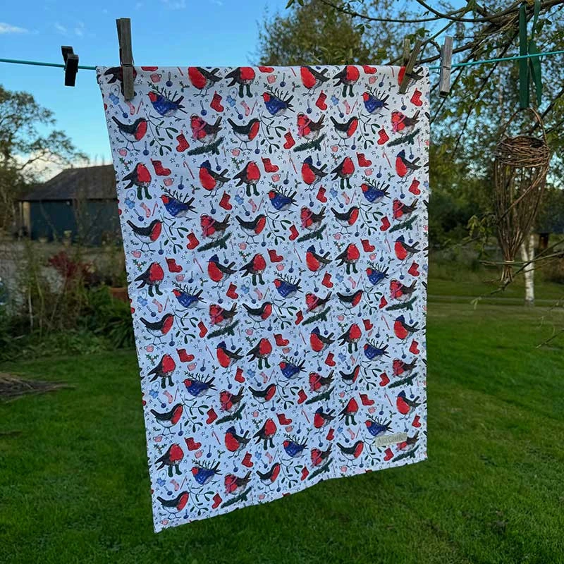FESTIVE ROBINS CHRISTMAS TEA TOWELS