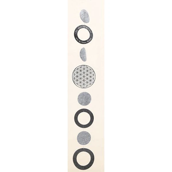 Elegante 130 cm lange Girlande, die sich bei Luftbewegung dreht und dadurch das Chi im Wohnraum zirkulieren lässt. So kann die Kraft der "Blume des Lebens" sanft ihre schützende Energie überall dort verbreiten, wo sie aufgehängt wird. Die Girlande enthält einen dekorativen Filzring mit Weisheitsspruch: »Du wirst morgen sein, was du heute denkst.« Lassen Sie sich von dieser Schöpfungsenergie umfliessen!