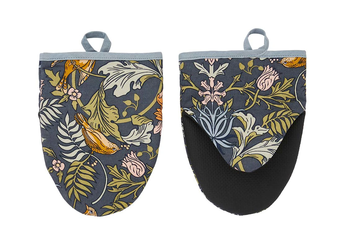 These beautiful William Morris inspired Microwave Mitts will help you stay ahead of the Arts&Craft trend. Finches perch on branches and peck at berries while sinuous leaves wind lazily around the blooming chrysanthemums and bluebells. The rich dark tones are complimented by mossy greens and bright ochres, while dusky pinks add softness.