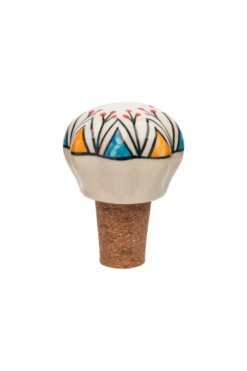 Der Flaschenverschluss aus Keramik und Kork ist eine stilvolle und umweltfreundliche Möglichkeit, Flaschen sicher zu verschliessen. Der obere Teil besteht aus hochwertiger, glatter Keramik, die langlebig, leicht zu reinigen und lebensmittelecht ist. Der untere Teil wurde aus natürlichem Kork gefertigt, sorgt für eine zuverlässige Abdichtung und bewahrt die Frische von Flüssigkeiten. Das Design des Verschlusses überzeugt mit einem liebevoll gestalteten floralen Muster. Die harmonischen Farben verleihen dem Verschluss eine individuelle Optik. Alle verwendeten Materialien und Farben sind ungiftig und sicher für den Kontakt mit Lebensmitteln, sodass der Verschluss nicht nur ästhetisch, sondern auch funktional überzeugt. Dieser Flaschenverschluss ist ideal für Wein-, Öl- oder Essigflaschen und eignet sich hervorragend als Geschenk für umweltbewusste Geniesser*innen mit Sinn für Ästhetik.