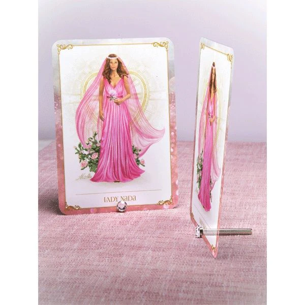 Wohin mit der Engelkarte, der Postkarte, dem Leitgedanken? Endlich gibt es eine geniale und superschöne Möglichkeit, Ihren Lieblings-Motiven eine Aufstellmöglichkeit zu geben, ohne Bilderrahmen und ohne Kühlschrankplatzierung. Einfach Ihre liebsten oder wichtigsten Kärtchen zwischen die beiden Magnete stecken und an jeden beliebigen Platz stellen, wo Sie diese so lange hübsch dekorieren können, bis Sie sie ersetzen möchten. Der glitzernde Magnet-Kopf veredelt das Ganze aufs Schönste.