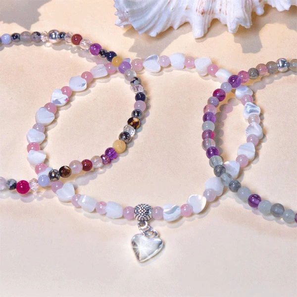 Das Fusskettchen Herz mit Maona-Perlmutt ist ein modernes Fussgelenkkettchen, dass in kunstvoller Handarbeit aus energiereichen Edelsteinen gefertigt wurde. Der hübsche Charm in Herzform glänzt in der Sommersonne. Die Kette ist elastisch und passt somit an alle gängigen Fussgelenkgrössen. Besonders gut kommt der Schmuck an von der Sonne gebräunten Füssen zur Geltung.