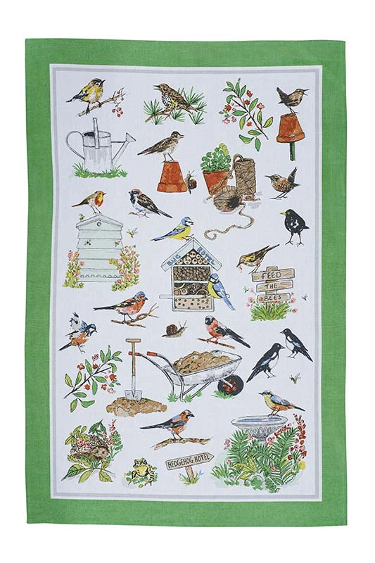 A lovely Tea Towel created by the northern Irish company Ulster Weavers. This provincial hand-illustrated print features the wildlife we love to see, with the homely additions of bug hotels, balls of twine and terracotta pots. A loving testament to the secret life of our garden friends and the enjoyment they bring to us all.