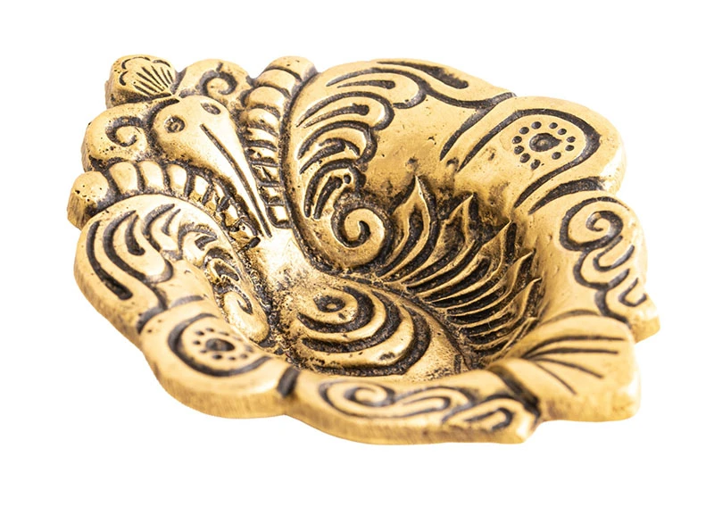 Auch wenn die Gheelampe schlicht erscheinen mag, so trägt diese Ganesha-Gheelampe eine tiefe Symbolik, indem sie das Irdische mit dem Göttlichen vereint.