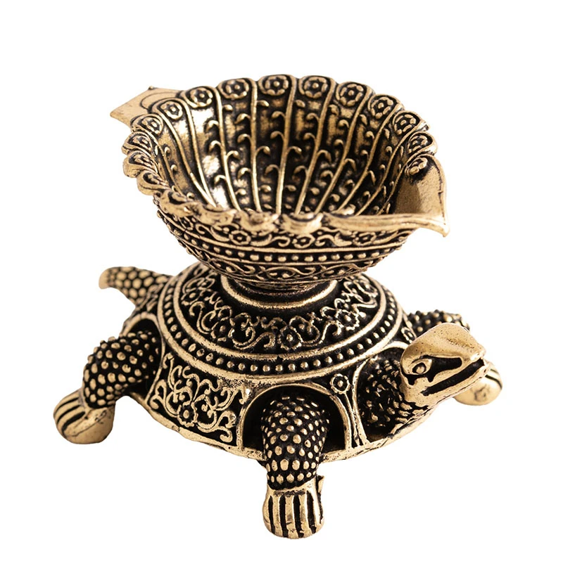 Auch wenn die Gheelampe schlicht erscheinen mag, so trägt diese Schildkröten-Gheelampe eine tiefe Symbolik, indem sie das Irdische mit dem Göttlichen vereint.