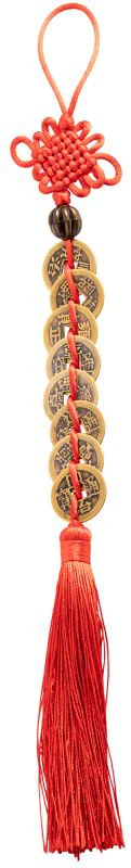 Die Münze ist in China das klassische Symbol für Glücks- und Wohlstandsmehrung. Eine einzelne Münze steht für diesen Aspekt im Ganzen. Ein geflochtenes Münzband gibt uns ein sehr schönes Beispiel, wie verstrickt und verflochten wir mit dem Schicksal und den Gegenständen in dieser Welt sind. Eine Wechselwirkung, die uns zum Nachdenken auch über unser seelisches Wohl einlädt. Das geflochtene Band der Münzen soll darüber hinaus sinnbildlich den Reichtum an unser Schicksal knüpfen. Ein mächtiges Glückssymbol in unserer sich stetig wandelnden Welt.