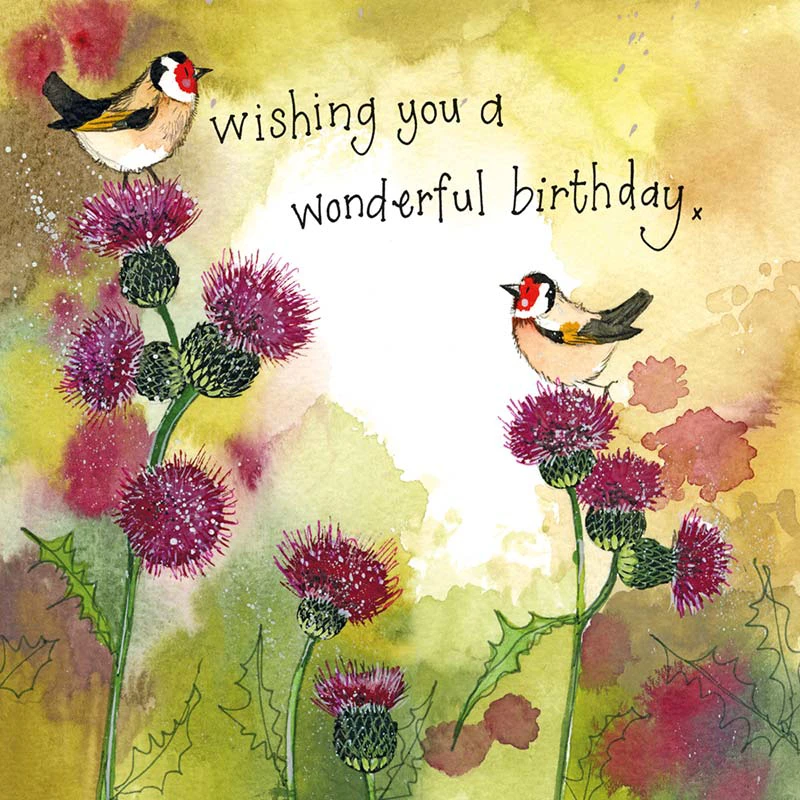 GOLDFINCHES & THISTLE BIRTHDAY CARD