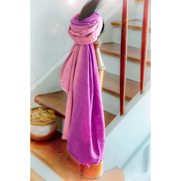 Dieser grosszügige Schal begeistert mit seiner besonderen Länge und der eleganten Zweifarbigkeit in harmonischen Orchideetönen. Mit seinen 180 × 100 cm lässt er sich individuell wickeln, knoten oder drapieren – diagonal getragen, entsteht sogar eine Länge von ca. 2,40 m. Ideal für kreative Stylings, leichte Schultertücher oder als weicher Begleiter im Alltag. Weich, atmungsaktiv und einfach schön.