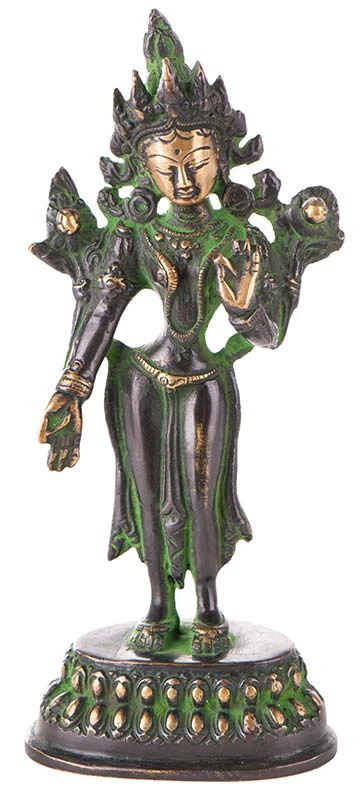 Die Grüne Tara wird im tibbetischen Buddhismus als Beschützerin vor allen Gefahren verehrt. Zu jeder Zeit - ob bei Tag oder Nacht - ist sie bereit, schützend und helfend einzugreifen.