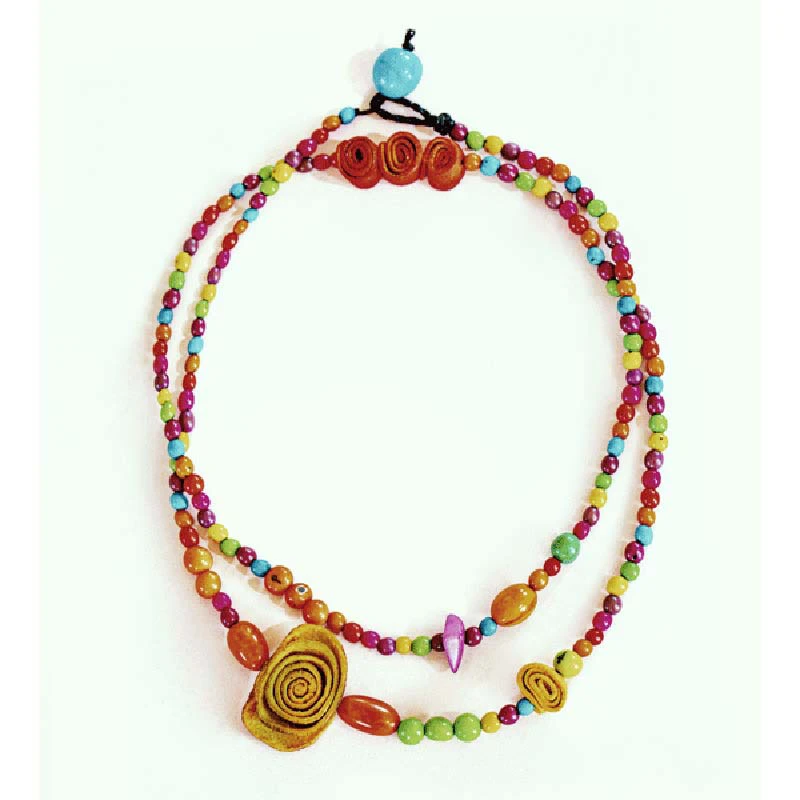 Die bunte Kette »Marie« besteht u.a. aus wunderschönen Perlen der Tagua-Palme, die in den tropischen Regenwäldern Südamerikas zu Hause ist. »Pflanzliches Elfenbein« nennt man diese Samen, da sie hart wie Stein sind. Im Zusammenspiel ausgesuchter Naturmaterialien entsteht ein einzigartiges Design voller kolumbianischer Lebensfreude.