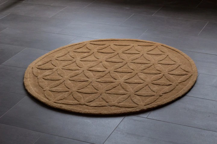 Die Blume des Lebens macht diesen Teppich zu einem wunderschönen Blickfang und hat eine positive energetische Wirkung auf sein Umfeld. Der warme, leicht mellierte Zimtton gibt ein heimeliges Gefühl und das natürliche Material spendet Geborgenheit.