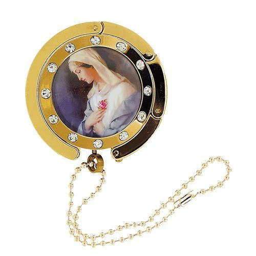 Wer kennt das nicht: Wohin mit der Tasche in einem kleinen Café oder Restaurant? Der zauberhafte Taschenhalter »Maria« ist mehr als nur ein praktischer Begleiter, der Ihre Tasche immer griffbereit hält. Die lichtvolle Gestalt der Maria ist ein Sinnbild für die Reinheit der Liebe und das Mitgefühl der weiblichen Gottheit in jedem von uns. Material: Metall, 12 Strass-Steinchen. Ø 4,5 cm