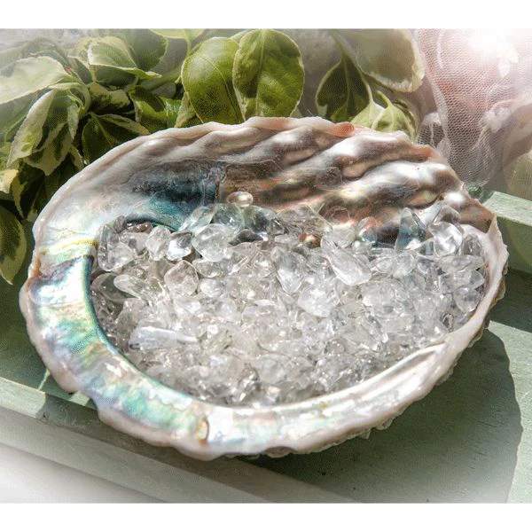 Material: Paua-Muschelschale, reiner Bergkristall und Bergkristall-Trommelsteine
