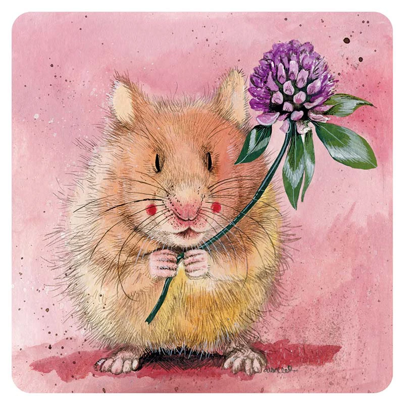 . Coaster with laminated top and cork backing. Size 100mm x 100mm.