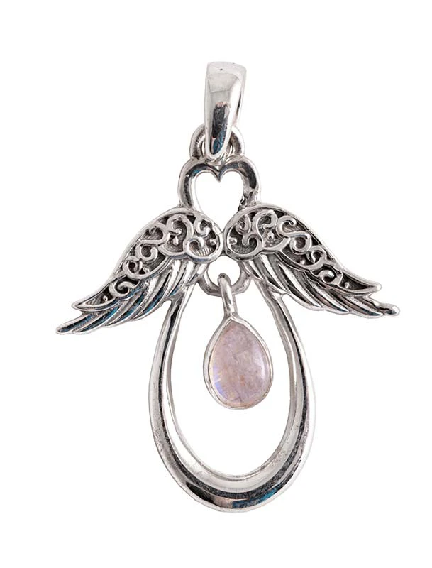 Schützende kleine Engelbegleiter auf all unseren Wegen. Mit ausgebreiteten Flügeln stehen sie wachsam an unserer Seite. Der grosse Mondstein sorgt dabei für die Verbindung, damit auch wir immerzu den Kanal in himmlischen Sphären offenhalten.