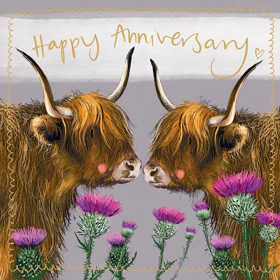 HIGHLAND COW ANNIVERSARY LARGE SPARKLE CARD