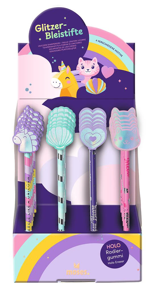 2in1 Steckstifte Regenbogen mit Radierer , VE-25