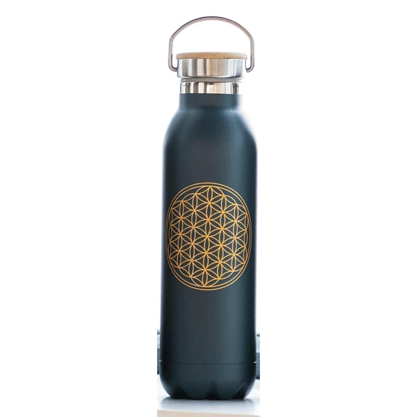 Die Blume des Lebens Isolier-Trinkflasche in matt anthrazit von Bodhi ist die perfekte Flasche für Ihre Lieblings Kalt- oder Heissgetränke. Ganz egal, ob heisser Chai oder selbstgemachter Eistee: Mit der edlen Isolier-Trinkflasche haben Sie Ihr Lieblingsgetränk immer in der richtigen Temperatur dabei. Die doppelwandige, vakuumisolierte Isolierflasche aus rostfreiem Edelstahl fasst 600 ml Ihres Lieblingsgetränks und hält es wahlweise heiss oder kalt. Dank des Bambusdeckels mit Silikonring lässt die Flasche sich fest verschliessen, so dass unterwegs nichts auslaufen kann.