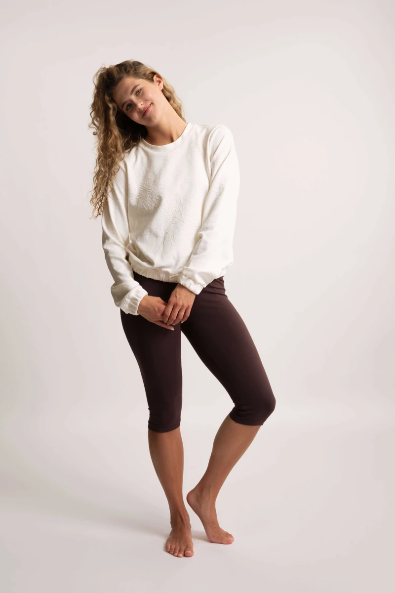Ein eleganter Stick mit OM auf der Hüfte erinnert an die innere Mitte. Im Inneren des Sweaters finden Sie eine subtile Affirmation im Nackenbereich: „Ich achte und liebe mich.“ Ein liebevoller Begleiter – nicht immer sichbar - aber immer für Sie da!