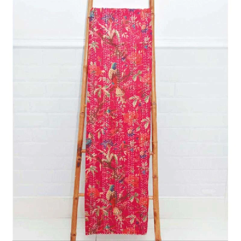 Diese wunderschöne Decke aus 100 % Baumwolle wird Ihnen viele Jahre Freude bereiten. Sie ist verziert mit Laufstichlinien, einer der ältesten Formen der indischen Stickerei, die traditionell aus Westbengalen und Bangladesch stammt. Die Kantha-Stickerei ist bekannt für ihre feinen, detaillierten Muster und die Verwendung von kräftigen, leuchtenden Farben. Bedruckt ist diese Decke mit einem zeitlosen Muster, das perfekt zu jedem Dekorationsstil passt. Sie eignet sich perfekt als Überwurf auf dem Sofa, als Tischdecke oder als Wandbehang. Die Größe der Decke ist großzügig bemessen und bietet ausreichend Platz, um sich gemütlich einzukuscheln. Sie ist ein perfektes Geschenk für alle, die sich für indische Kunst und Handwerk interessieren oder einfach eine schöne und gemütliche Decke für ihr Zuhause suchen.