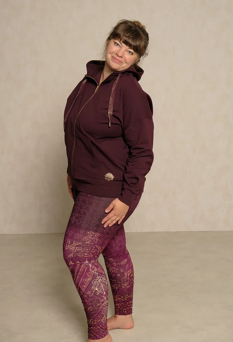 Die Kapuzenjacke weit in aubergine von The Spirit of OM ist ein nachhaltiger Wohlfühl-Klassiker, der in keinem Kleiderschrank fehlen darf.