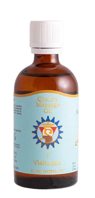 Vishuddha Kehlchakra ermöglicht die Kommunikation mit anderen. Zeigt uns die Kraft des Wortes, der Wahrheit und verbindet Herz mit Stirn. Aus dem Gleichgewicht geraten, neigen wir dazu, verlegen, schüchtern oder aber gesprächig zu sein. Eine Komposition aus Jojobaöl, Lavendelöl, Bitterorangenöl, Eukalyptusöl, Benzoeextrakt.