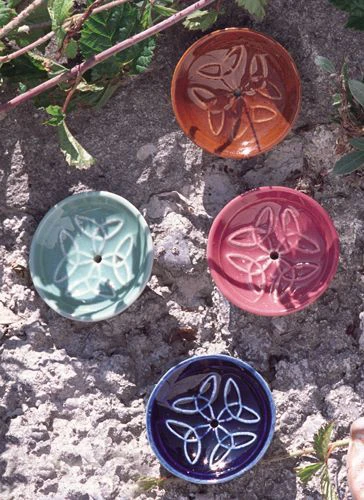 Diese kleinen runden Keramikhalter haben einen Durchmesser von ca. 5 cm. Sie sind farbenfroh und ideal auf Reisen oder überall dort, wo wenig Platz ist.