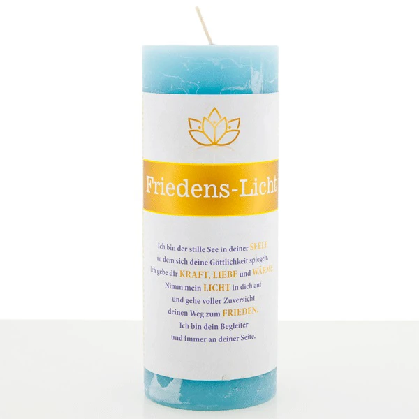 Die Gebetskerze Licht des Friedens mit dem schönen Gebet auf der Banderole bringt Sie in Einklang mit innerem Frieden. Das Licht dieser zartblauen Friedenskerze schenkt Zuversicht und auch Vertrauen für die Transformation unserer Erde.