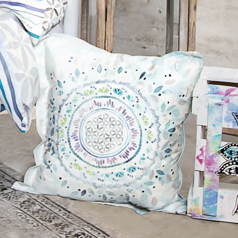 Liebevoll und harmonisch wirken die handgemalten, von der Schönheit der Natur inspirierten Elemente des Kissen Nature Dream von The Spirit of OM. Durch die feinen Farbabstimmungen und das fantasievoll blühende Design wirkt es lichtvoll und lebendig, eine wahre Augenweide für jedes Zuhause. Der eingebrachte Rosenquarz Edelstein hilft Ihnen dabei Ihr Herz zu öffnen und Ihr inneres Wohlbefinden und den Energiefluss in Ihrem Körper zu steigern. Das Motiv der Blume des Lebens kann Ihre Lebenskraft positiv stärken und helfen, Ihre innere Harmonie zu fördern.