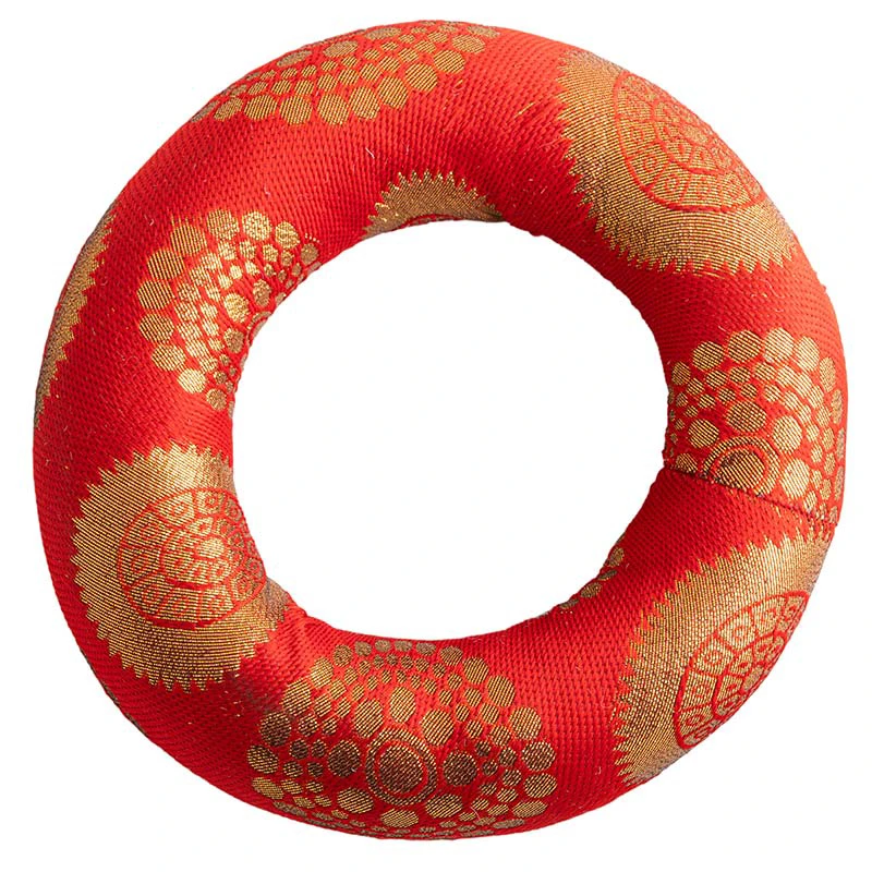 Dieses Klangschalenkissen sorgt für ein traditionelles Erscheinungsbild im nepalesischen Stil. Die zauberhafte Goldbestickung bringt einen exklusiven Hauch in die Räumlichkeit.