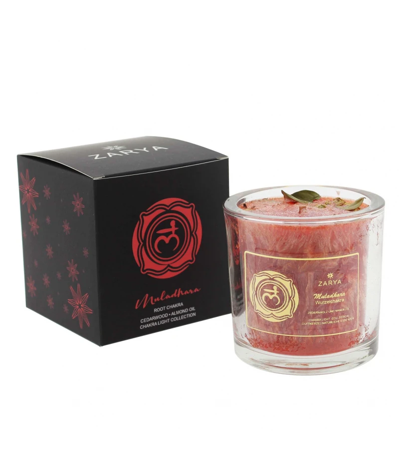 Diese hochwertige Chakra Duftkerze des jungen Familienunternehmens ZARYA ist aus 100% pflanzlichen Stearin (kbA), naturreinen ätherischen Ölen, Mineralsteinen und Bio-Kräutern in liebevoller Handarbeit in Deutschland hergestellt. Der Holzdocht verleiht der Duftkerze eine angenehme Natur-Akustik durch sein einzigartiges Knistern. Sie ist behutsam in Seidenpapier eingewickelt und in einer edlen schwarzen Verpackung erhältlich.