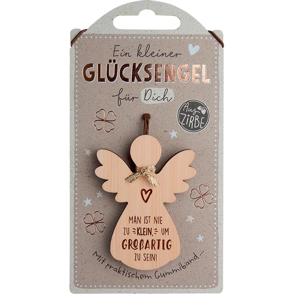 Dieser Glücksengel wird aus hochalpinem Zirbenholz gefertigt und mit einer feinen Gravur »Man ist nie zu klein, um grossartig zu sein!« veredelt. Ein liebevolles Geschenk; ökologisch und so schön wie die Natur selbst. Mit praktischem Gummiband.