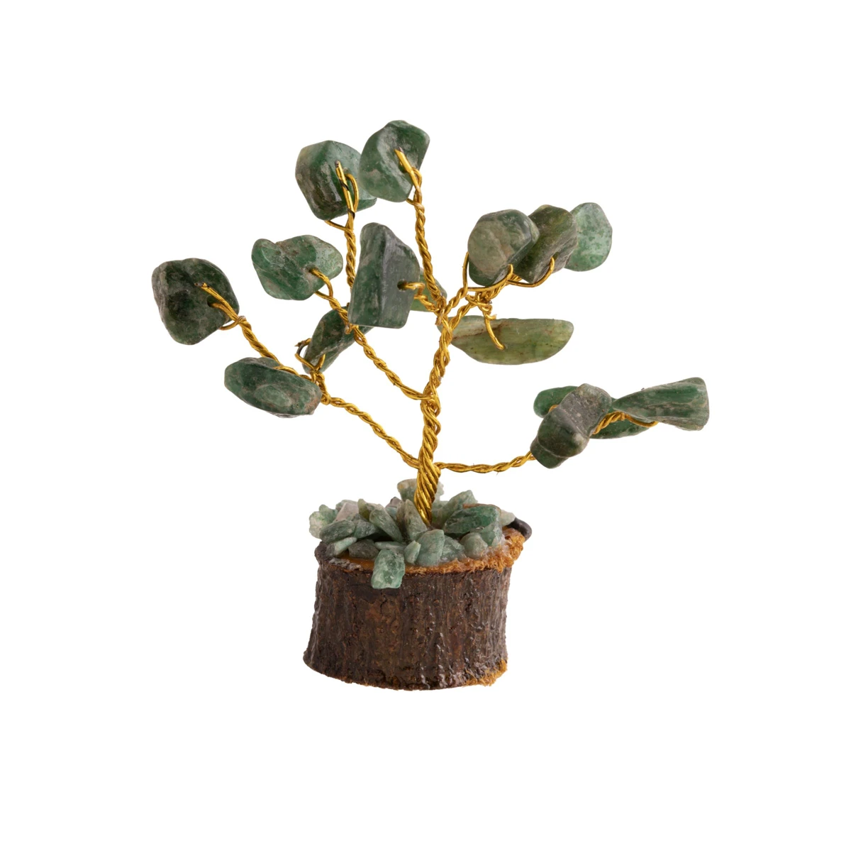 15 Edelsteine, vergoldeter Eisendraht, Neem Holz, Höhe 4-5 cm