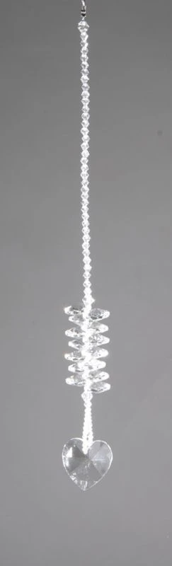 KristallherzSüsse Kristallherzen eröffnen uns das Spektrum des Lichts in vielen bunten Farben und bringen Licht in unsere Herzen.KlarLänge: 29 cm, Herzkristall L: 28 mm aus Kristallen, mit Aufhängung