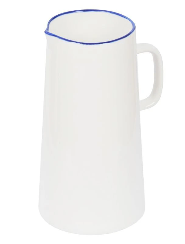 Mit dem Krug CLASSIC des Dresdner Lifestyle Labels Tranquillo kann man nicht nur frische Limonaden oder aromatische Tees servieren, es eignet sich auch wunderbar für Blumen und Dekoration. Die Geschirrserie zeichnet sich durch ihre besondere, unregelmässige Form aus. Die blaue Farbgebung am Rand sorgt für einen dezenten Blickfang auf Ihrem Tisch. Das robuste Geschirr im klassischen Stil ist der Tranquillo Dauerbrenner und wird Sie und Ihre Gäste begeistern.
