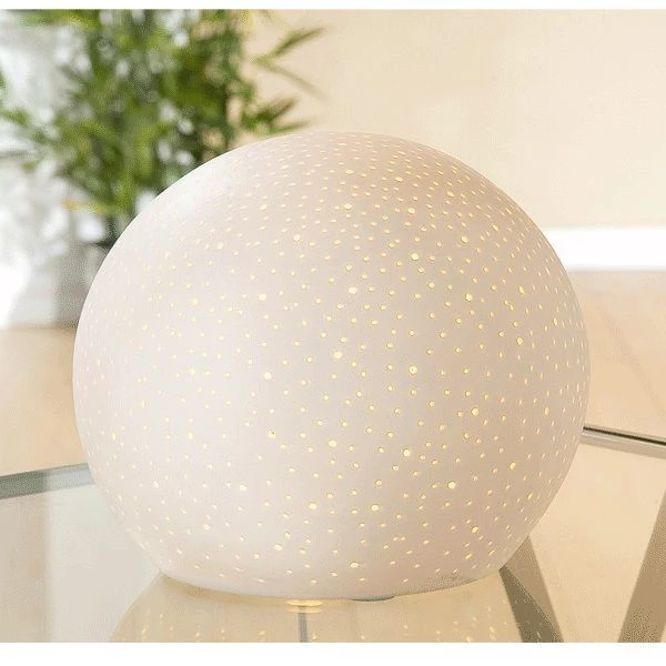 Schön und klar steht die Kugellampe 'Cosmos' im Raum. Im ausgeschalteten Zustand ist sie ein Ruhepol des Friedens. Eingeschaltet lassen die unzähligen Lichtpunkte einen wundervollen Sternenhimmel in der weissen Kugel aufleuchten. Die Wirkung ist traumhaft schön. Wird ohne Leuchtmittel geliefert.