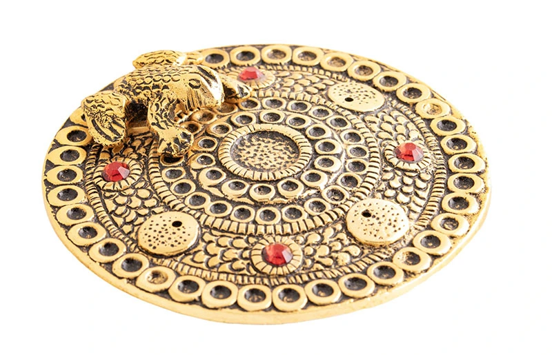 Ein kunstvoll gearbeiteter Räucherhalter mit grüner Malachiteinlage und feinen Messingemblemen. Die Eule symbolisiert Weisheit, Klarheit und den Zugang zu tieferem Bewusstsein. Ein kraftvolles Stück für besondere Räuchermomente.
