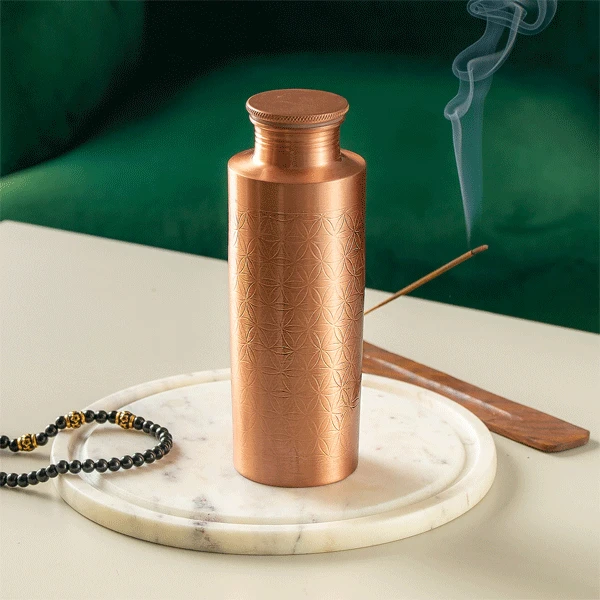 Energie in ihrer reinsten Form – durch Symbolik, Material und bewusste Anwendung. Die Blume des Lebens, ein uraltes Symbol der heiligen Geometrie, steht für Harmonie, Schöpfungskraft und die Verbundenheit allen Lebens. In Kupfer geätzt wird sie zum energetischen Begleiter für alle, die bewusst leben und trinken. Diese neu interpretierte Kupferflasche vereint die natürlichen Vorteile von Kupferwasser. Es wirkt reinigend, basisch und unterstützt den energetischen Ausgleich. Einfach mit stillem Wasser befüllen und idealerweise 8-10 Stunden ruhen lassen für spürbar belebendes Trinkwasser. Perfekt für alle, die Vitalität, Achtsamkeit und funktionelle Rituale im Alltag erleben möchten. Mit Schraubverschluss. Nicht spülmaschinenfest. Dieser Kupferkrug hat einen losen Deckel zum schnellen Ausgiessen.
