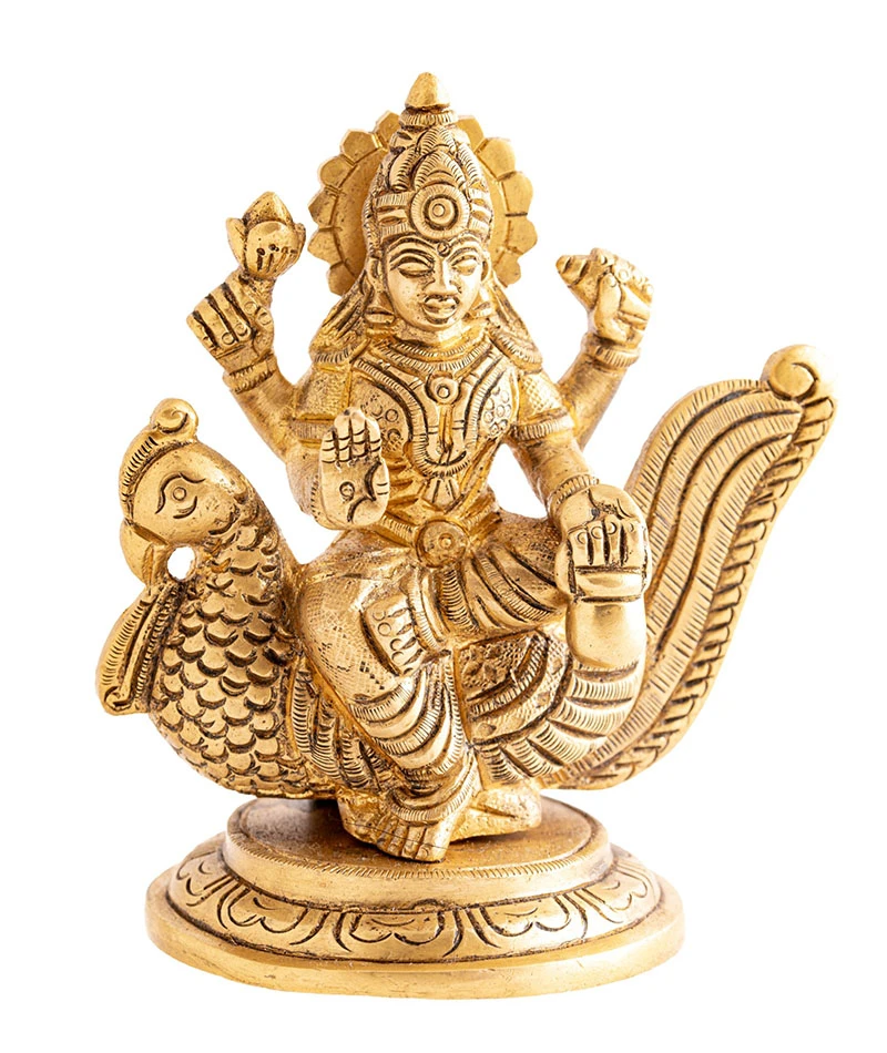 Der Pfau ist ein bedeutendes Symbol im Hinduismus und wird mit Schönheit, Stolz und Schutz assoziiert. Ersteht für göttlichen Schutz, Mut und Unsterblichkeit. Seine prächtigen Federn symbolisieren das Erwachen des spirituellen Bewusstseins und die Vielfalt des Lebens. In der hinduistischen Kunst und Ikonographie verkörpert der Pfau zugleich Anmut und die Fähigkeit, das Böse zu vertreiben.