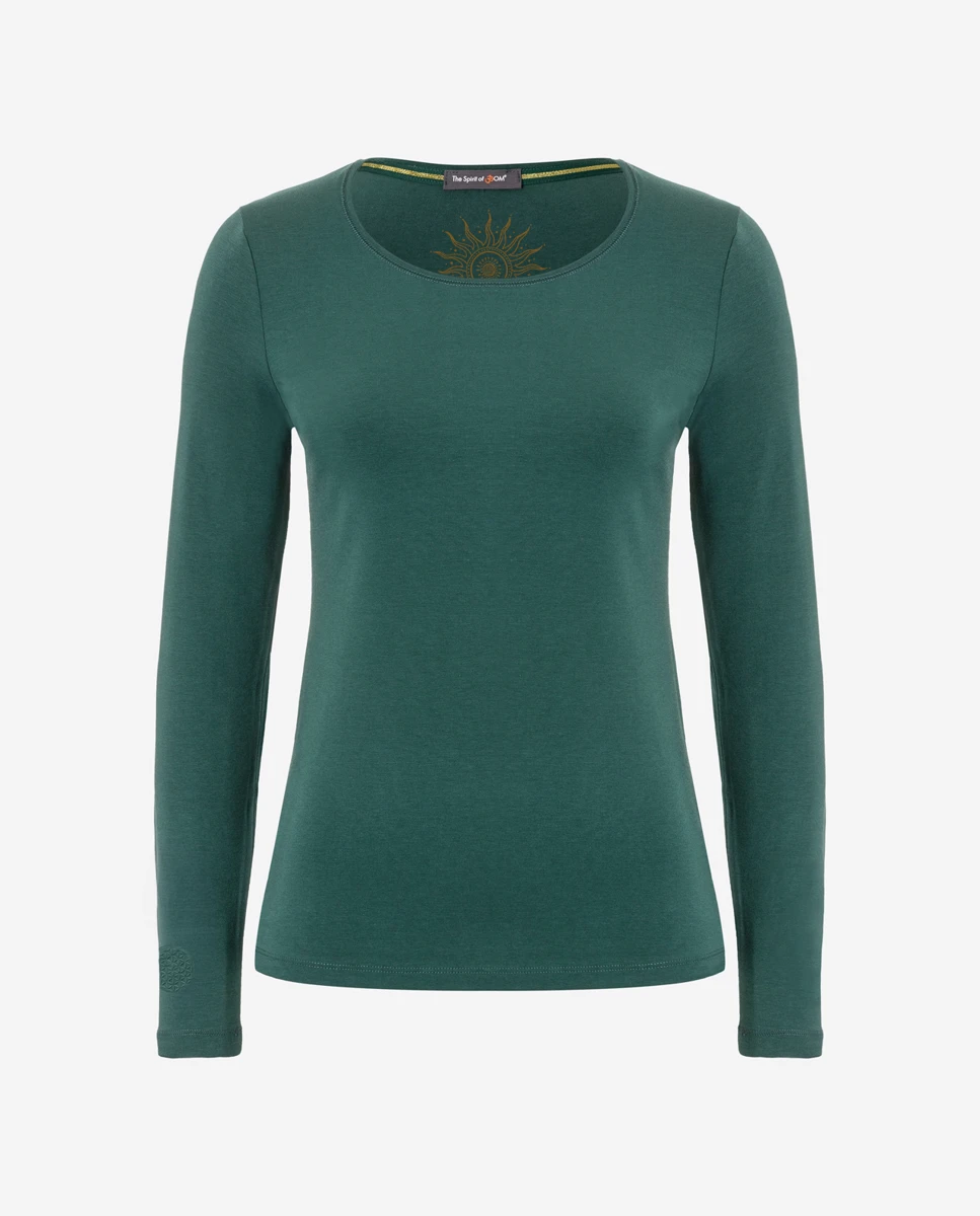 Elegantes Langarmshirt in smaragd von The Spirit of Om, zeitlos und unglaublich bequem.