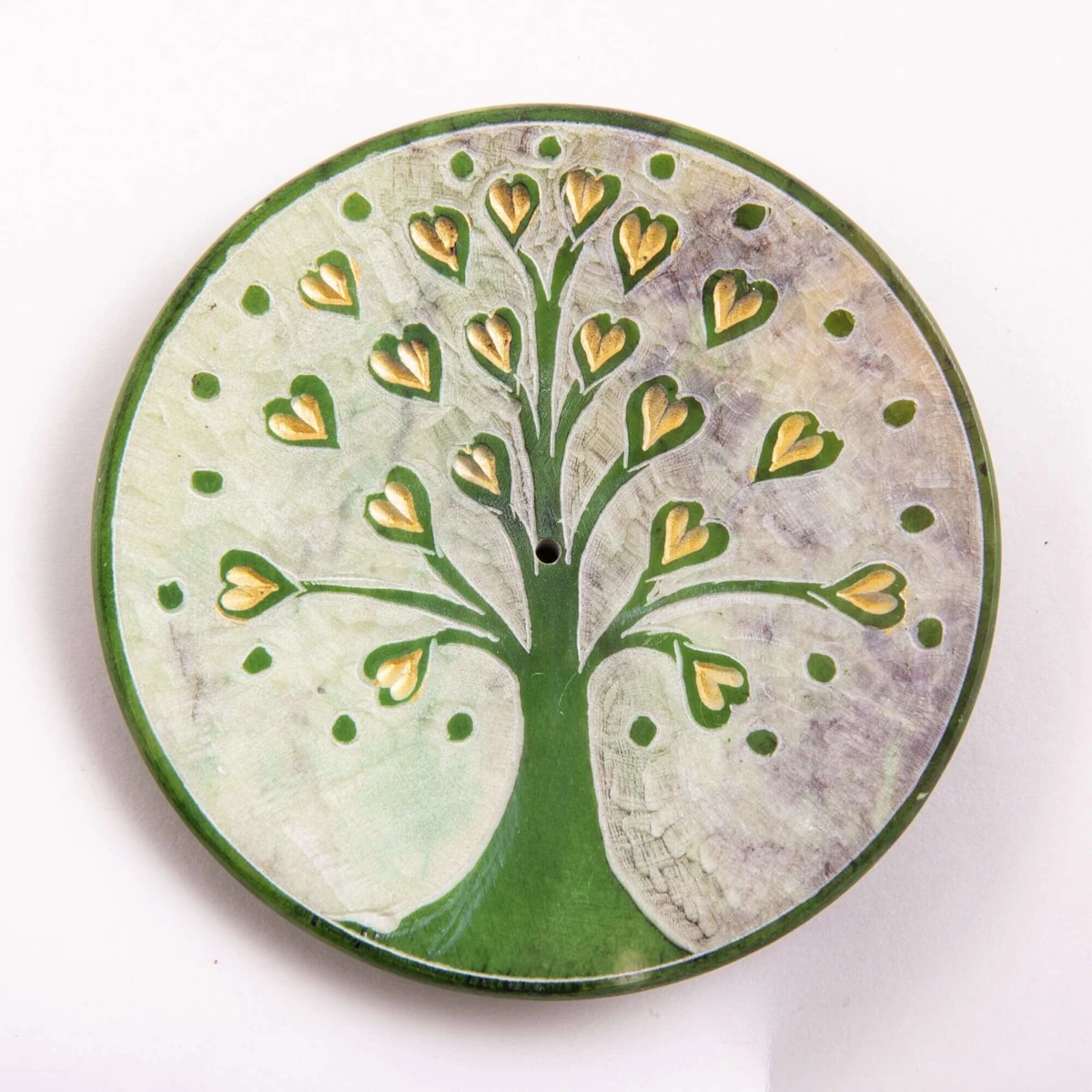 Lebensbaum Herzchen, grün - Räucherstäbchenhalter aus Speckstein