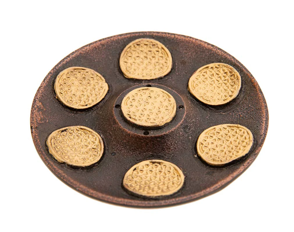 Aluminium im Kupfer Antik Finish mit aufgesetzten goldfarbenen Symbolen. ø 10.5 cm