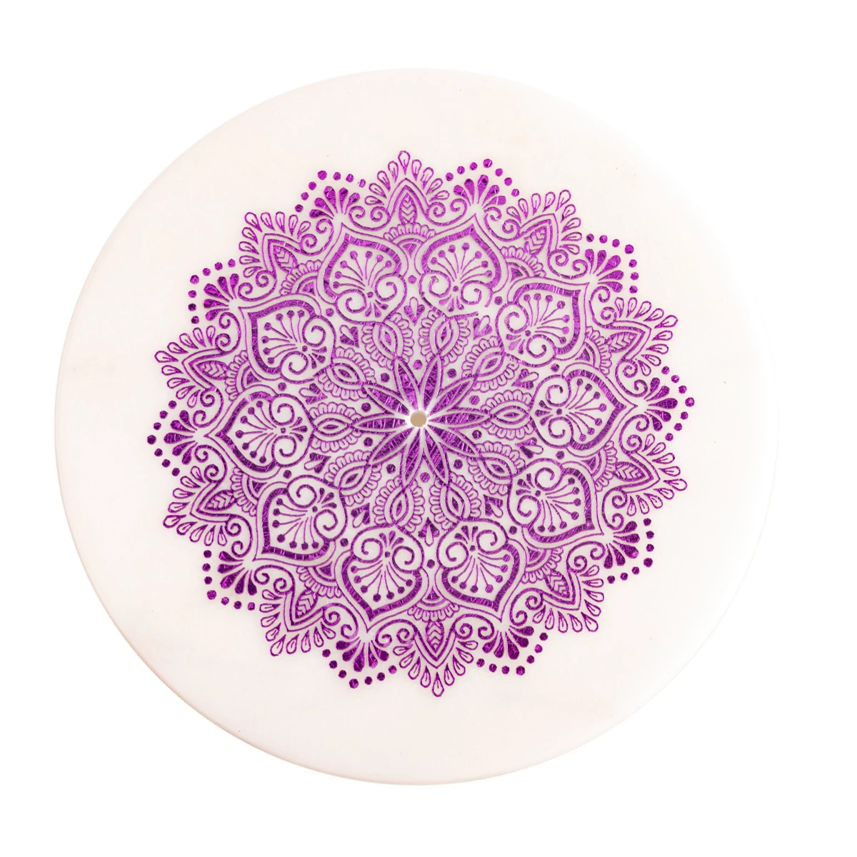 Als krönender Abschluss ist der Marmorhalter mit einem Aufdruck eines Herzmandalas geschmückt. Das Mandala entwickelt seine Magie dank seiner immer wiederkehrenden Formen rund um den Kern. Das Betrachten kann tiefe seelische Prozesse auslösen, da man in meditativer, heilender Weise zum eigenen Ursprung zurückgeführt wird.