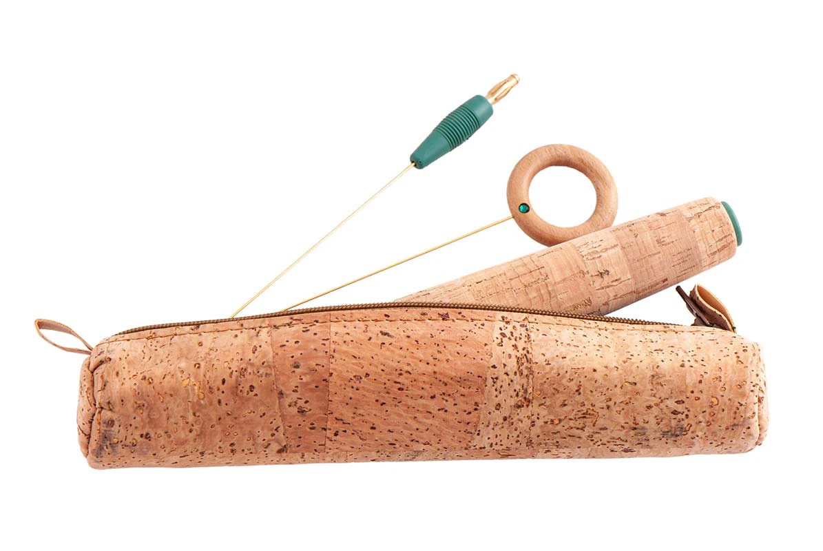Mit der vergoldeten Antenne am Korkgriff ist es einfach, Schwingungen zu spüren. Der Reif aus Holz bzw. vergoldetem Messing an der Spitze verstärkt den Ausschlag.