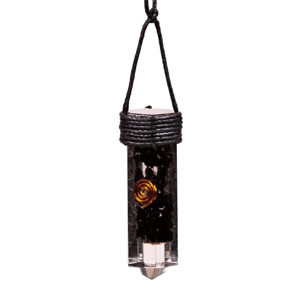 Der Orgonit-Anhänger Schungit ist ein Zusammenspiel aus Orgonit mit einer für die Lebensenergie stehenden Kupferspirale. So ist ein aussergewöhnlicher Schmuckanhänger entstanden, der die Energiefelder im Menschen und die Beziehung zwischen Mensch und Kosmos harmonisiert.