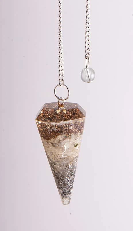 Orgonpendel BergkristallOrgon ist pure, vitale Lebensenergie, die überall in der Atmosphäre vorhanden ist. Diese Energie wird durch Harz, Metalle und Kristalle gebündelt. Das verwendete Metall kann variiren.H: ~42 mm