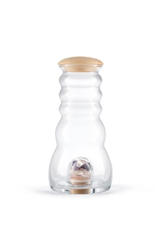 Wasser aus der Karaffe wird aufgrund deren Form und der Blume des Lebens natürlich angereichert und neu strukturiert. Eine perfekte Kombination mit dem einzigartigen Geschmack der Zirbe.