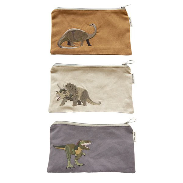 For the dino fan, a beautifully embroidered pouch. It's perfect for keeping your pencils or some of your dino toys…