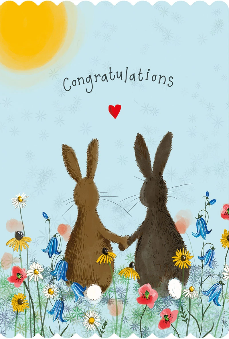 RABBITS AND WILD FLOWERS CONGRATULATIONS CARD