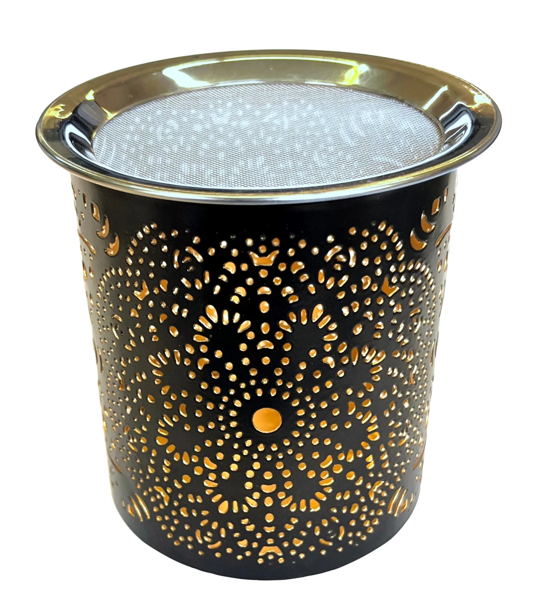 Räuchergefäss Mandala aus Stahl mit ausgelasertem Muster Ø9cm (h: 10cm), schwarz